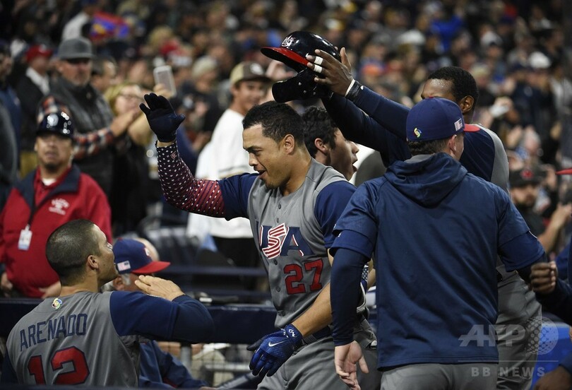 米国は2-2の同点で迎えた4回、ジャンカルロ・スタントン(Giancarlo Stanton)の2点本塁打で勝ち越すと、1点差に追い上げられた8回にはアンドリュー・マカッチェン(Andrew McCutchen)の2点適時二塁打で再び突き放した。