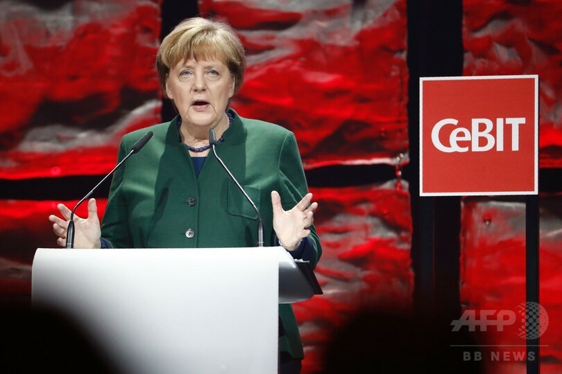【3月20日 AFP】(写真追加)安倍晋三(Shinzo Abe)首相は19日、独ハノーバー(Hanover)の世界最大級の情報通信技術見本市「セビット(CeBIT)」に登場し、ドイツのアンゲラ・メルケル(Angela Merkel)首相と共に開幕前夜の会場であいさつのスピーチを行った。20日から24日まで開催の今年の同見本市では、日本がパートナー国として参加している。