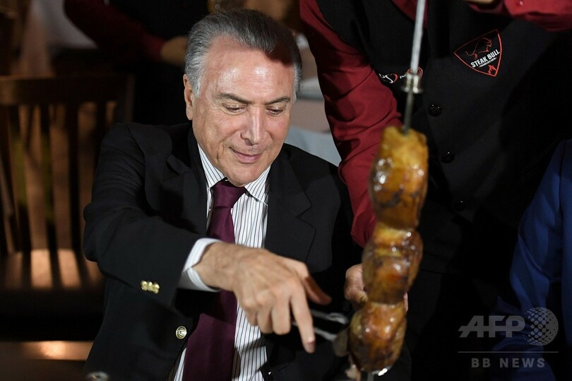 テメル大統領はブラジルの伝統的な肉料理、シュラスコを提供するレストランへ外交官らを招待。「もし招待を受けてくれたらとてもうれしい」と呼び掛け、19人が参加した。