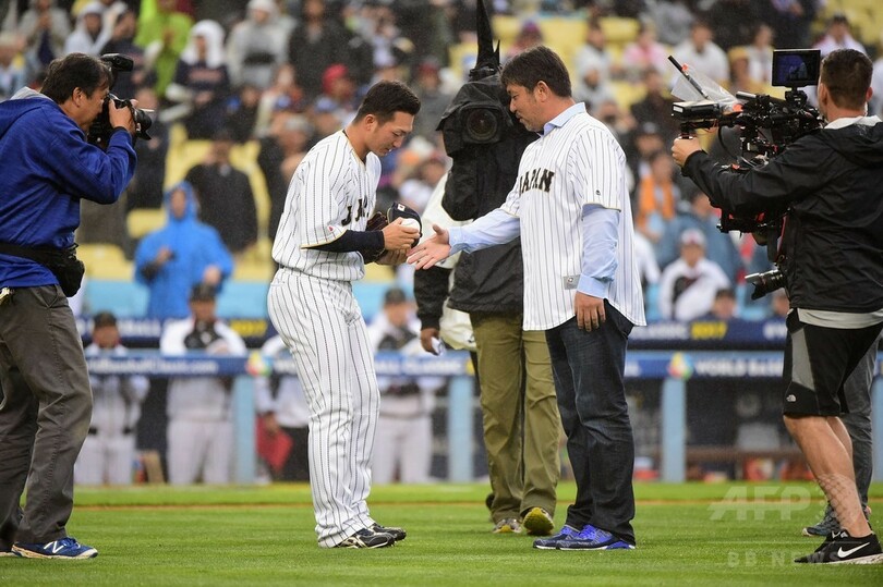野茂氏が始球式、WBC準決勝・日本対米国の試合前に