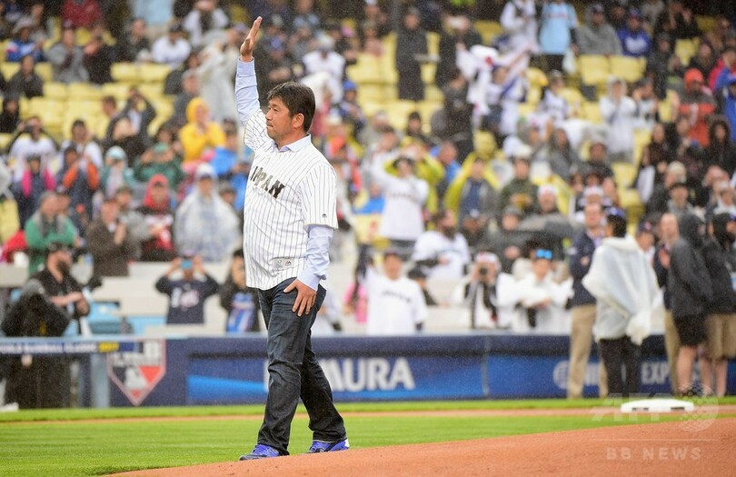 野茂氏が始球式、WBC準決勝・日本対米国の試合前に