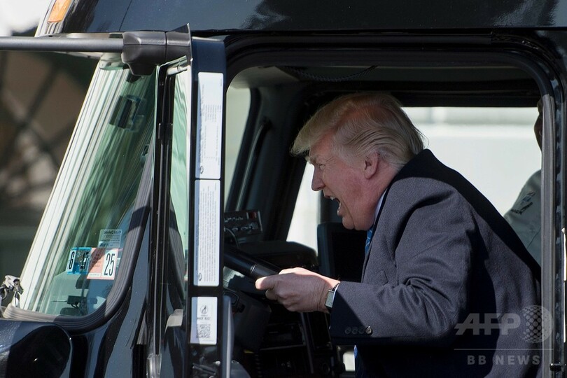 【3月24日 AFP】ドナルド・トランプ(Donald Trump)米大統領は23日午後、医療保険制度改革(通称オバマケア、Obamacare)代替法案の採決をめぐる交渉を一休みし、しばし大型トラックの運転手気分を味わった。