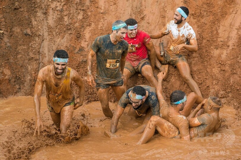 主催者によると地元イスラエルはもとより、フランス、米国、ポーランド、ウクライナなどから集まった男女約5000人が最大で22の障害物に挑戦。ぶら下がったロープを伝ったり、斜面をよじ登ったり、冷水の中をはって進むなどして、最後は泥だらけで倒れ込む参加者も続出した。