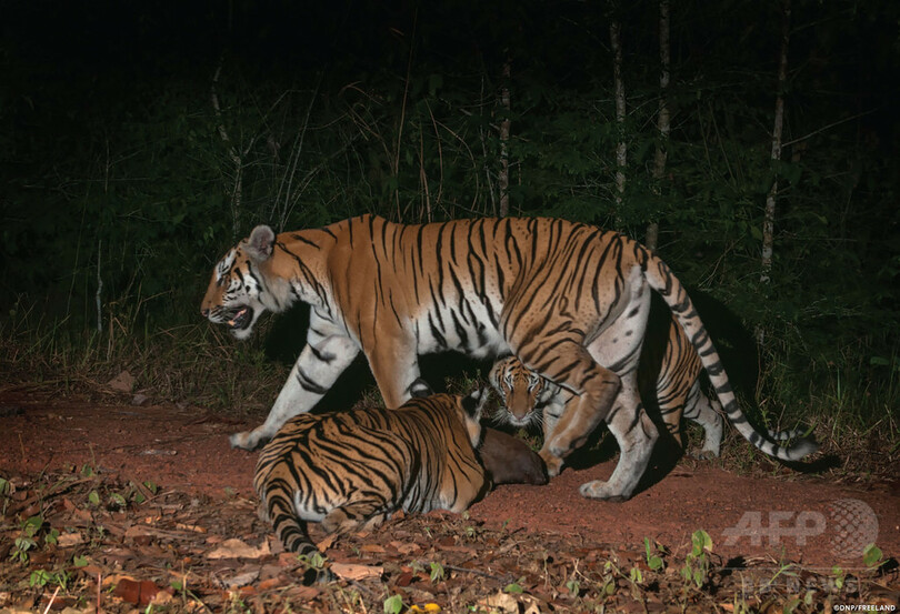 【3月29日 AFP】タイ東部のジャングルで、密猟により絶滅が危惧されている野生のインドシナトラの繁殖が確認され、自然保護活動家らは28日、「奇跡的な」勝利だと喜びの声を挙げた。