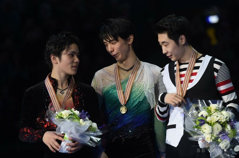 ここ2年間は僅差で銀メダルに終わっていた羽生に続き、宇野昌磨(Shoma Uno)が2位に入って日本勢がワンツーフィニッシュを飾ると、3位には中国の金博洋(Boyang Jin、ジン・ボーヤン)が続き、2018年の平昌冬季五輪を前にアジア勢が表彰台を独占した。