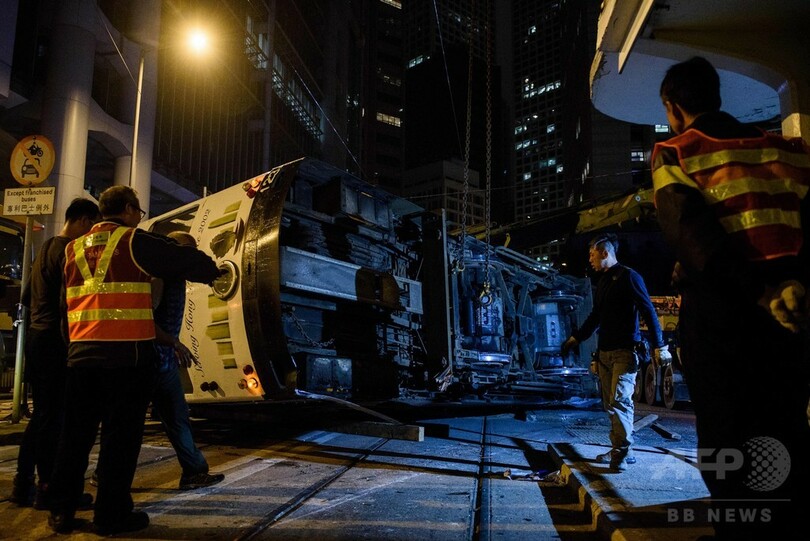 香港で路面電車が横転、14人負傷 運転士を逮捕