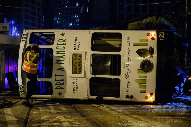 香港で路面電車が横転、14人負傷 運転士を逮捕