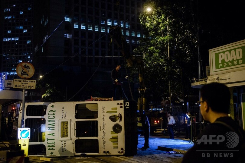 香港で路面電車が横転、14人負傷 運転士を逮捕