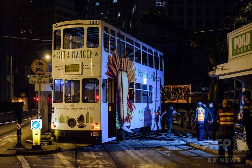 【4月6日 AFP】(更新)香港(Hong Kong)中心部で6日午前零時(日本時間同1時)ごろ、2階建ての路面電車(トラム)が横転する事故があった。この事故で14人が負傷。当局はトラムの運転士(23)を危険運転の疑いで逮捕した。