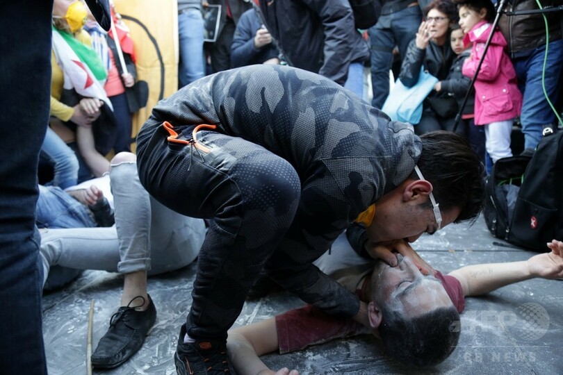 トランプ大統領は5日、シリアのバッシャール・アサド(Bashar al-Assad)政権が、今回の化学兵器によるものとみられる攻撃で一線を越えたと警告。少なくとも86人が死亡したこの攻撃を「人道に対する侮辱」と非難した上で、米国が単独で対応を取ることも示唆していた。(c)AFP