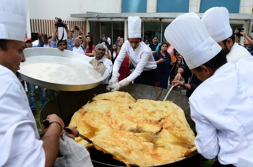 主催者らは、今回の挑戦で完成した直径147センチのバトゥーラーが国内最大サイズとして、ギネス世界記録(Guinness World Records)のインド版「リムカ公式記録(Limca Book of Records)」に認定されることを期待している。(c)AFP