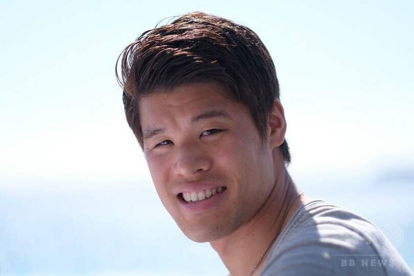 「南フランスがこんな良いとは思ってなかったです。ドイツは雨ばかりで、なにもかも灰色だったんで。ここは楽園です」と語りながら、酒井は4月からビーチで水遊びする人たちに向け腕を伸ばした。(c)AFP/Emmanuel BARRANGUET
