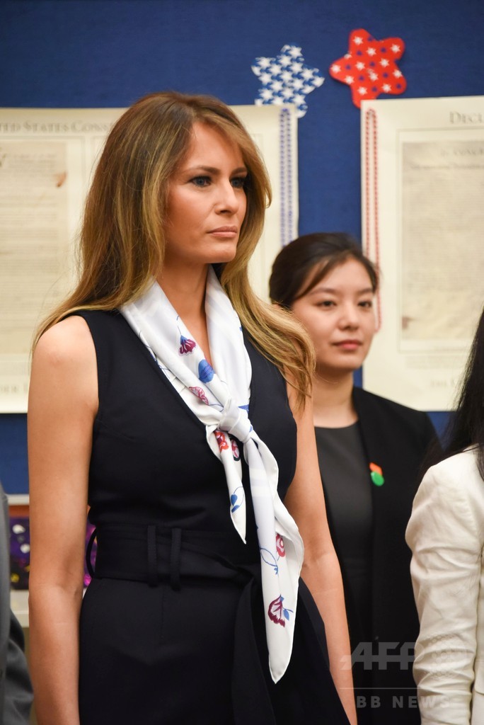 【4月8日 AFP】米フロリダ(Florida)州ウエストパームビーチ(West Palm Beach)で7日、ドナルド・トランプ(Donald Trump)大統領と中国の習近平(Xi Jinping)国家主席の会談が行われる一方、トランプ大統領のメラニア(Melania Trump)夫人と習主席の彭麗媛(Peng Liyuan)夫人は現地の芸術学校を訪問した。(c)AFP