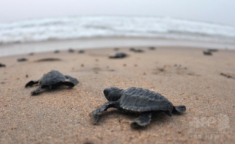 【4月8日 AFP】ヒメウミガメの産卵地として知られるインド東部オディシャ(Odisha)州ガンジャム(Ganjam)県のラッシカルヤ(Rushikulya Beach)の砂浜で8日、ふ化した無数の赤ちゃんガメがベンガル湾(Bay of Bengal)へ入っていった。中には海に向かう途中で漁網にかかり、逃げ出そうともがく赤ちゃんガメもいた。(c)AFP