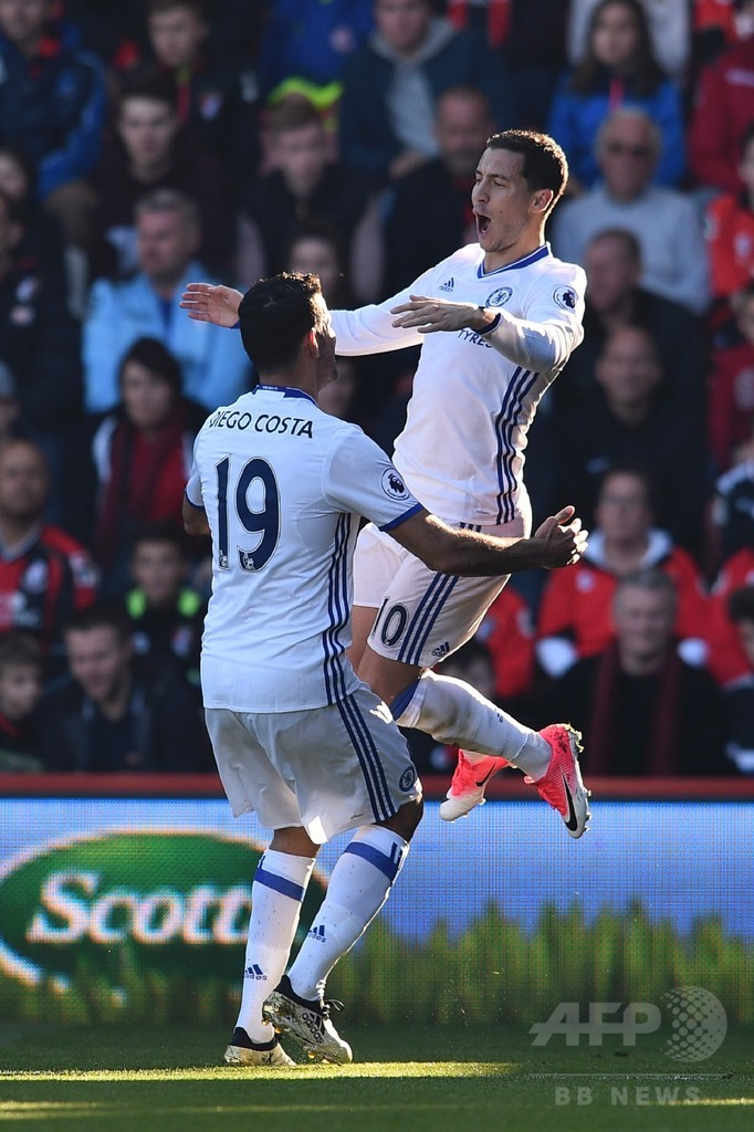 【4月9日 AFP】16-17イングランド・プレミアリーグは8日、第32節の試合が行われ、首位チェルシー(Chelsea)は3-1でボーンマス(AFC Bournemouth)を退け、優勝のプレッシャーをはねのけた。