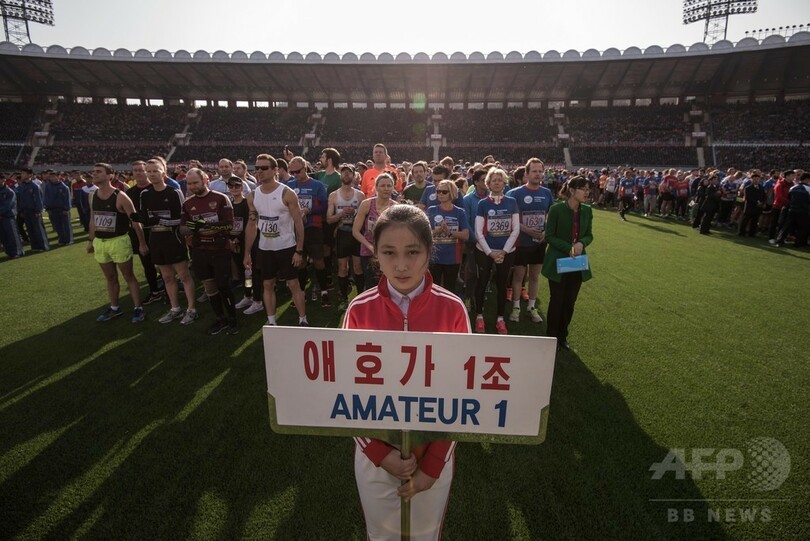 【4月9日 AFP】(訂正、写真追加)北朝鮮の首都平壌(Pyongyang)で9日、平壌国際マラソンが開催された。このマラソン大会は、国際社会から孤立した北朝鮮の年間の観光カレンダーにおいて山場ともいえる大イベントで、金日成競技場(Kim Il-Sung Stadium)では多数の外国人ランナーたちがスタートラインに並んだ。