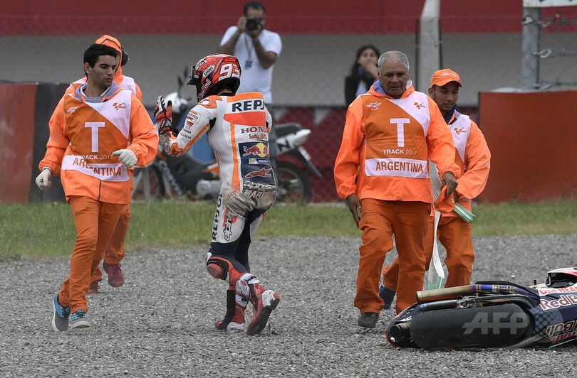 一方、昨季王者でレプソル・ホンダ(Repsol Honda)のマルク・マルケス(Marc Marquez、スペイン)は、決勝でポールポジションからスタートしたものの、4周目の第2コーナーで転倒を喫してリタイアに終わった。