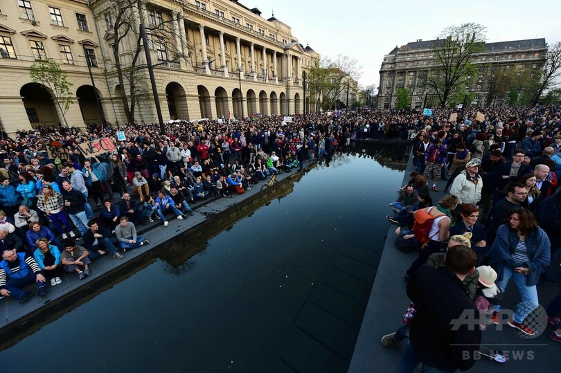 【4月10日 AFP】ハンガリーの首都ブダペスト(Budapest)で9日、教育法の改正に抗議する大規模デモが行われ、主催者によると最大8万人が参加した。教育法改正をめぐっては、ハンガリー出身の米投資家ジョージ・ソロス(George Soros)氏が創設した中央ヨーロッパ大学(CEU)を標的にしたものだと批判されている。