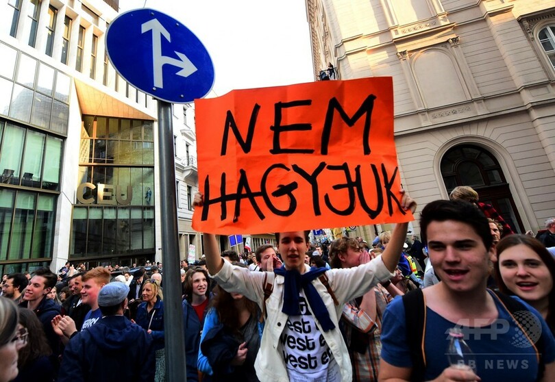 【4月10日 AFP】ハンガリーの首都ブダペスト(Budapest)で9日、教育法の改正に抗議する大規模デモが行われ、主催者によると最大8万人が参加した。教育法改正をめぐっては、ハンガリー出身の米投資家ジョージ・ソロス(George Soros)氏が創設した中央ヨーロッパ大学(CEU)を標的にしたものだと批判されている。