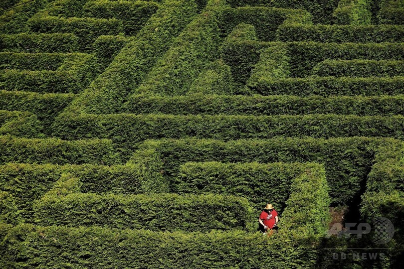【4月11日 AFP】スペイン北部の村ビジャプレセンテ(Villapresente)には、同国最大級の生垣の迷路がある。イトスギでできた屋外迷路の広さは5625平方メートルで、通路の幅は約1メートル、生垣の高さは約2.5メートル。挑戦者は最長5キロ以上歩くこともある。(c)AFP