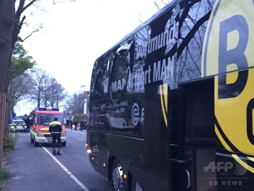 【4月12日 AFP】(更新、写真追加)日本の香川真司(Shinji Kagawa)選手が所属するドイツのサッカーチーム、ボルシア・ドルトムント(Borussia Dortmund)の一行を乗せたバスが11日、近くで起きた3度の爆発に巻き込まれ、スペイン出身のDFマルク・バルトラ(Marc Bartra)選手が負傷した。警察が発表した。