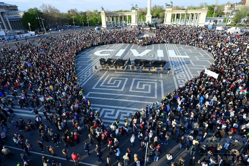 【4月13日 AFP】ハンガリーの首都ブダペスト(Budapest)で12日、市民団体とハンガリー出身の米投資家ジョージ・ソロス(George Soros)氏が創設した中央ヨーロッパ大学(CEU)の弾圧に抗議する反政府デモが新たに行われ、大勢が参加した。
