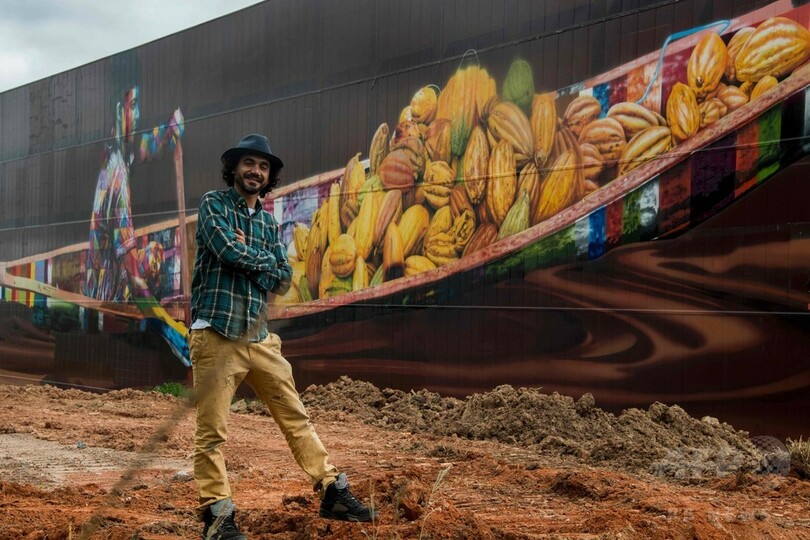 多作のコブラさんは現在、サンパウロ(Sao Paulo)の主要幹線道路沿いにあるチョコレート工場「カカウ・ショー(Cacau Show)」の壁をキャンバスにした作品に取り組んでいる。作品は、建物の壁一面だけではなく、工場の一角を取り囲むように描かれており、完成したら「世界最大」になると言われている。