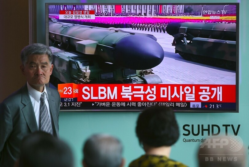 韓国の聯合(Yonhap)ニュースによると、パレードには新型の大陸間弾道ミサイル(ICBM)とみられるものや、北朝鮮が昨年8月に試射に成功した潜水艦発射弾道ミサイル(SLBM)も登場した。