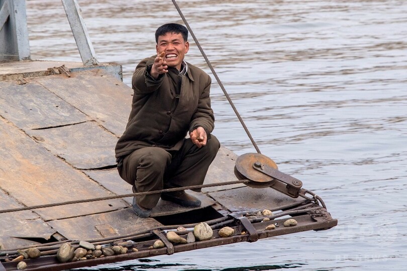 船が、丹東と北朝鮮側の新義州(Sinuiju)とを結ぶ中朝友誼橋(Sino-Korean Friendship Bridge)に近づいたとき、ある中国人観光客が、騒動に発展する恐れなどないと言わんばかりに、投石器を使って石ころを何の気なしに川へと飛ばした。