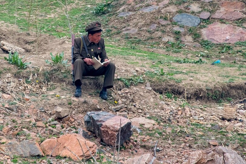 【4月17日 AFP】最近、挑発行為を繰り返している北朝鮮だが、中国との国境を流れる川沿いでは、たばこをくゆらせる兵士や水辺に座って静かに読書をする兵士の姿が見られ、軍が臨戦態勢にあるようにはまるで思えない──。