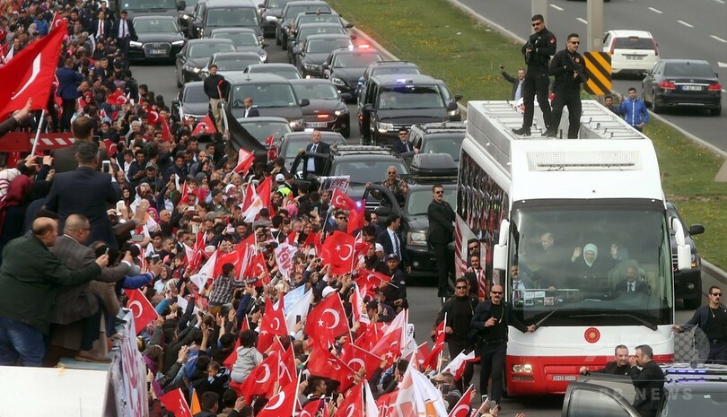 その上でエルドアン氏は、こうした国民投票を、昨年に英国が実施したEU離脱の是非をめぐる投票になぞらえた。英国の国民投票では、今回のトルコの国民投票と同じような小差でEU離脱が決まった。