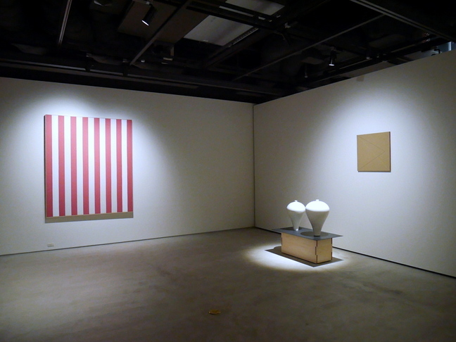 現在開催中の「待宵の美」展では、黒田泰蔵(Taizo Kuroda)の白磁やダニエル・ビュラン(Daniel Buren)のペインティングが共存。展示している作家の書籍も置いてあるので、書店とアートの双方がリンクした形で楽しめる世界的にも珍しいアートスペースとなっている。