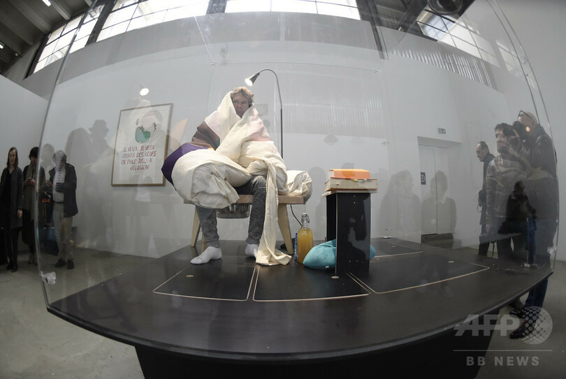 「本当にきついと思う。卵の上に座って寝ている。岩の中に閉じこもるよりずっと厳しいだろう」と美術館の広報担当者はAFPに話した。