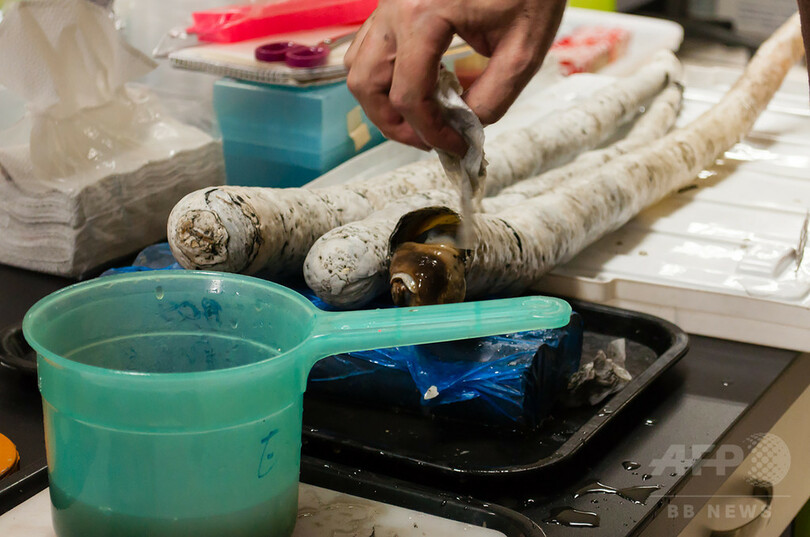 アルバノ氏によると、エントツガイは国外の海洋学者には未知の存在だが、地元の人々にはなじみの深い生き物で、食用にもされている。味は「タコのようで、地元では性欲促進作用があるとされている」と語った。(c)AFP