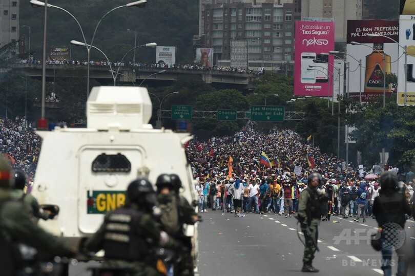 【4月20日 AFP】南米ベネズエラ各地で19日、ニコラス・マドゥロ(Nicolas Maduro)大統領の退陣を求める大規模な抗議デモが行われる中、少年(17)と女性(23)が銃で撃たれて死亡した。政治危機が深まっているベネズエラで、反政府デモに関連した死者は今月計7人となった。