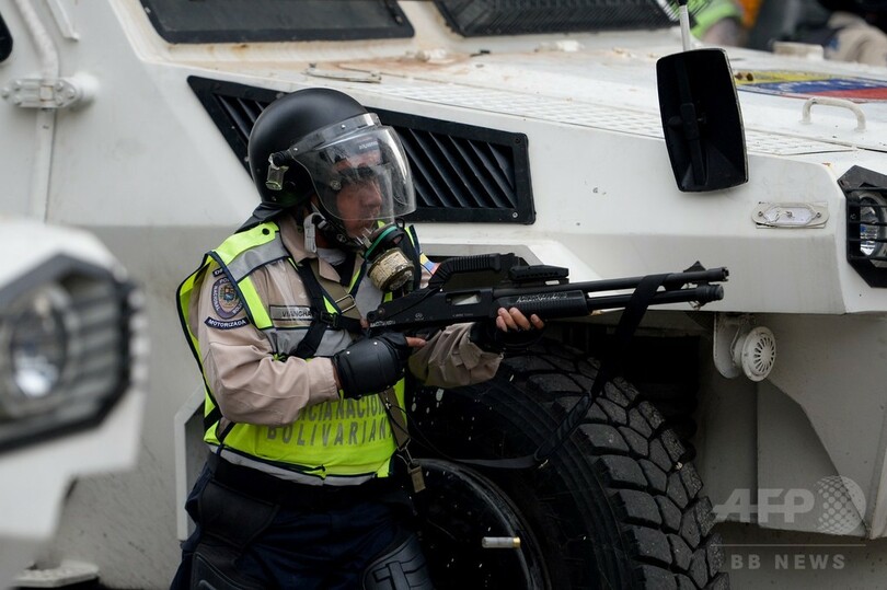 首都カラカス(Caracas)では、石を投げつけるデモ隊に機動隊が催涙弾で応酬するなど衝突が発生。目撃者らによると、その際に、バイクに乗った身元不明の男1人が少年の頭部を撃ったという。