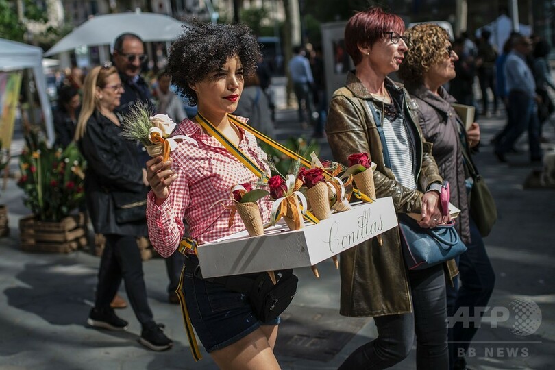 【4月24日 AFP】スペイン北東部カタルーニャ(Catalonia)自治州のバルセロナ(Barcelona)は23日、守護聖人サン・ジョルディ(Sant Jordi)に由来する祝日を迎え、街は赤いバラと本であふれた。