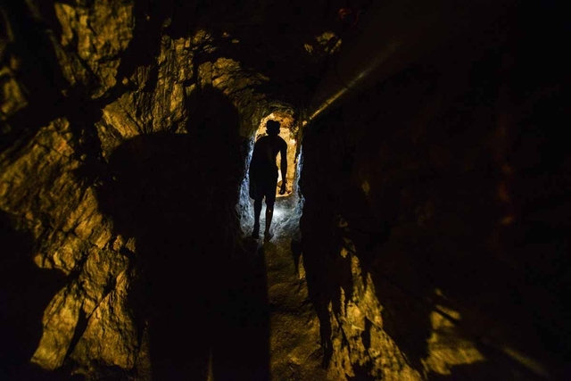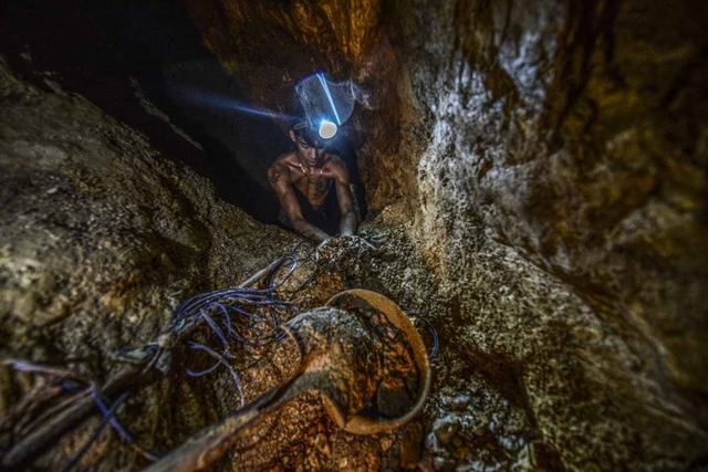 地下30メートル。かすかにガスのにおいがした。暑かったが、息苦しくはなかった。若い採掘者が岩の中の金脈を見せてくれた。