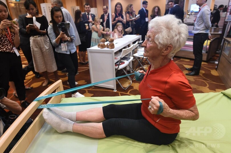 【4月25日 AFP】シンガポールで25日、高齢化社会をテーマに据えたビジネスフォーラム「第8回インターナショナル・エイジング・アジア・イノベーション・フォーラム(8th International Ageing Asia Innovation Forum)」が開催され、会場の一角では世界最高齢の体操選手とされる、ドイツ出身のヨハンナ・クアス(Johanna Quaas)さん(92)が演技を披露した。(c)AFP