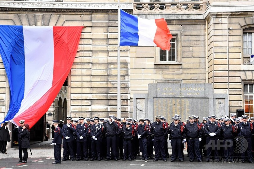 追悼式にはフランソワ・オランド(Francois Hollande)大統領の他、大統領選の決選投票に駒を進めた2人の候補、中道系独立候補のエマニュエル・マクロン(Emmanuel Macron)前経済相(39)と極右政党「国民戦線(FN)」のマリーヌ・ルペン(Marine Le Pen)党首(48)も出席した。