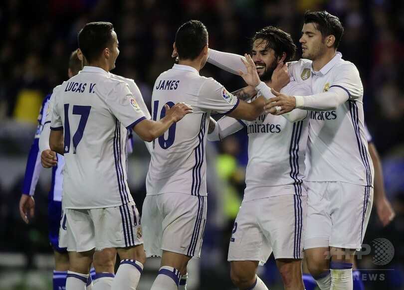 【4月27日 AFP】16-17スペイン1部リーグは26日、第34節の試合が行われ、レアル・マドリード(Real Madrid)はクリスティアーノ・ロナウド(Cristiano Ronaldo)らが不在の中、デポルティボ・ラ・コルーニャ(Deportivo La Coruna)に6-2で快勝し、リーグ優勝へ向けて有利な立場を維持した。