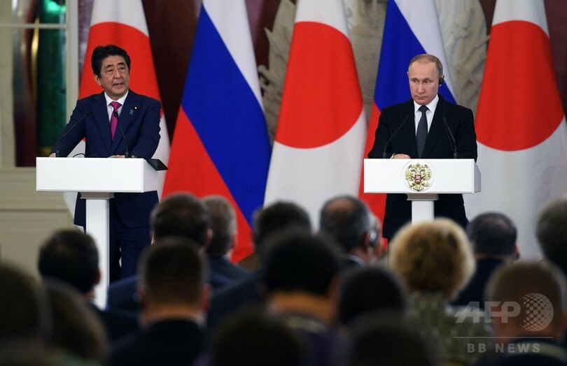 【4月28日 AFP】ロシアのウラジーミル・プーチン(Vladimir Putin)大統領は27日、首都モスクワ(Moscow)で安倍晋三(Shinzo Abe)首相と会談し、北方領土への航空機を使った元島民の墓参を開始することで合意した。