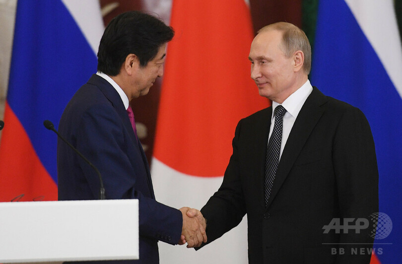 【4月28日 AFP】ロシアのウラジーミル・プーチン(Vladimir Putin)大統領は27日、首都モスクワ(Moscow)で安倍晋三(Shinzo Abe)首相と会談し、北方領土への航空機を使った元島民の墓参を開始することで合意した。
