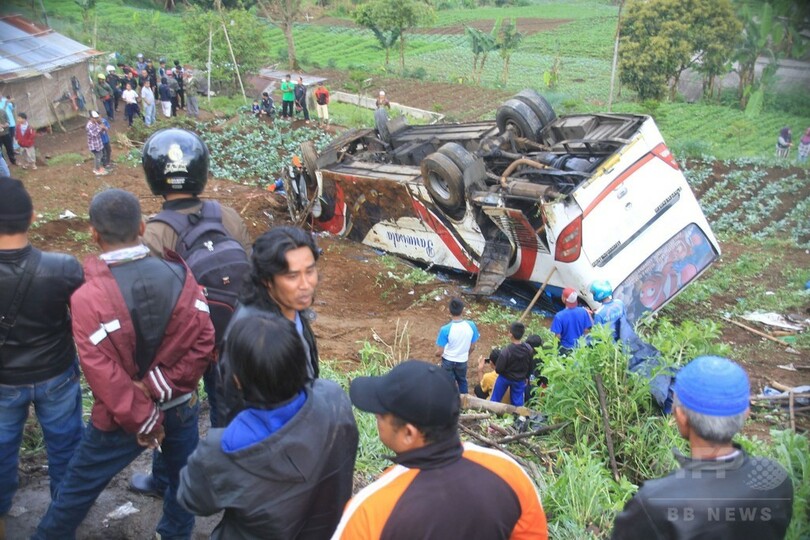 現場は、首都ジャカルタ(Jakarta)から南へ90キロに位置するジャワ州チアンジュール(Cianjur)。バスは複数の車やオートバイにぶつかった後、坂を転落。死者の中には、同バスの運転手とオートバイに乗っていた人らが含まれている。