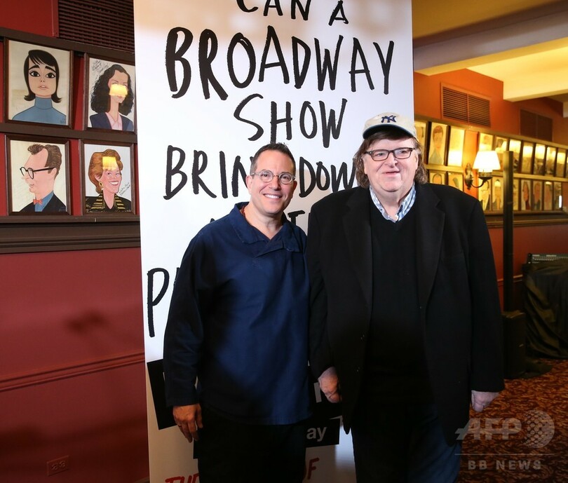新たな作品についてメイヤー氏は、「世界が今必要としているのは、マイケル・ムーアがブロードウェーの舞台に立ち、芝居でしか見ることのできない対話を通して、面白いストーリーと扇情的な政治的見解を観客と共有することだ」と述べた。(c)AFP