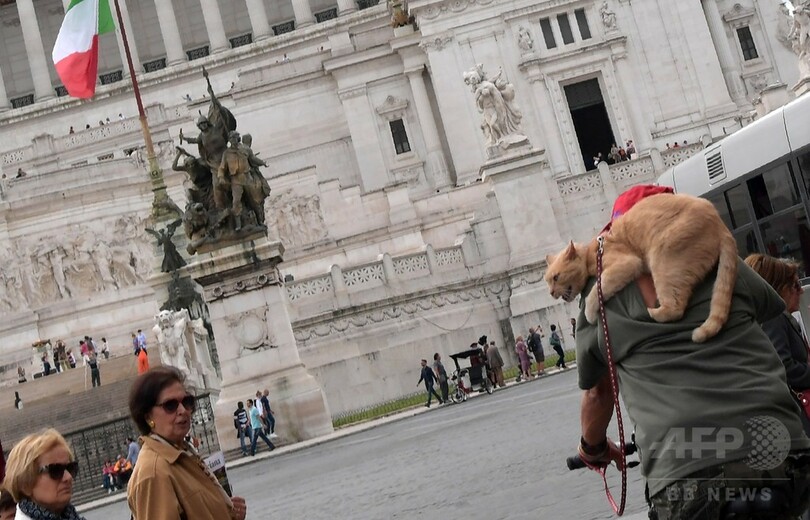 ニュース ライフ こぼれ話 わりと必死、サイクリング男性の背にしがみつく猫ちゃん 伊ローマ 2017年5月5日 15:46 発信地:ローマ/イタリア [ ヨーロッパ イタリア ] このニュースをシェア ‹ › ❮ 2/2 ❯ イタリア・ローマで自転車に乗る男性にしがみつく猫(2017年5月4日撮影)。(c)AFP/Tiziana FABI 画像作成中 ! 【5月5日 AFP】イタリア・ローマ(Rome)の中心部で4日、自転車で街中を走り抜ける男性の背中にしがみつく猫の姿をAFPのカメラがとらえた。(c)AFP ライフ 一覧へ> メディア・報道関係・法人の方向け 写真・動画 購入のお問合せ>
