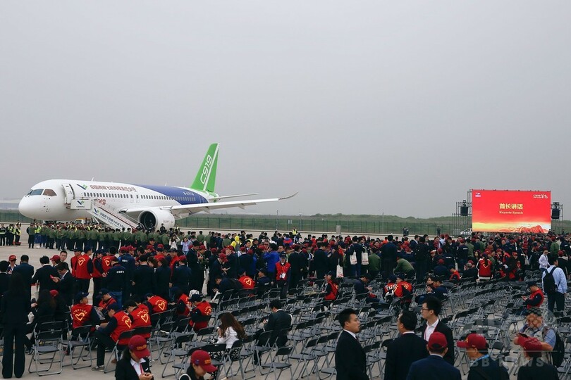 空港には、政府高官や旅客機を製造した国営の宇宙開発企業「中国商用飛機(COMAC)」の職員ら数千人もの人々が駆けつけた他、国営テレビは試験飛行の様子を生中継した。