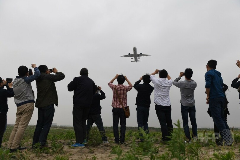 空港には、政府高官や旅客機を製造した国営の宇宙開発企業「中国商用飛機(COMAC)」の職員ら数千人もの人々が駆けつけた他、国営テレビは試験飛行の様子を生中継した。