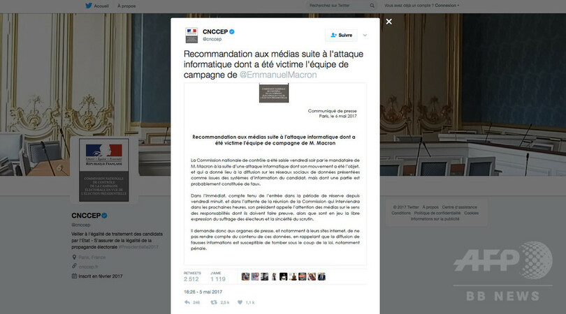 マクロン陣営は5日、「大規模かつ組織的なサイバー攻撃」を受け、数千におよぶ電子メールや会計記録、内部文書などが同日遅くインターネット上で公開されたと明らかにしていた。