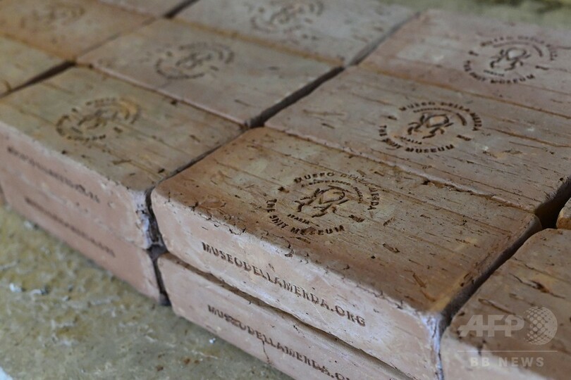 こうした製品は、ふんと、トスカーナ(Tuscan)地方で採れる粘土を混ぜた後に、「秘密」の製法を経て作り出される。「メルダコッタ」は赤粘土の素焼きの焼き物、テラコッタ(Terracotta)をもじって名づけられた。(c)AFP/Céline CORNU